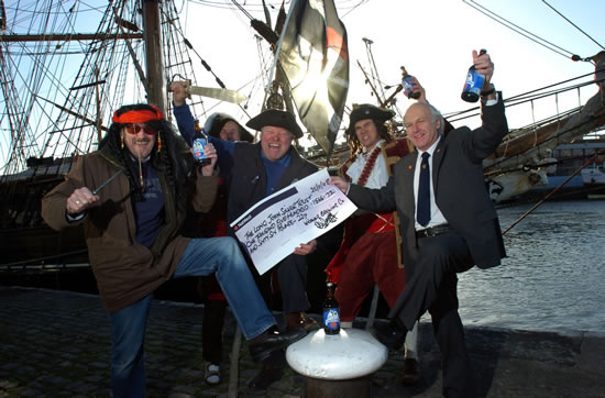 We are delighted that our friends at Wickwar Brewery have now produced Long John Silver Beer in bottles. The bottled beer was launched in July 2006 at Wickwar’s brewery tap, and over thirty Long John Silver Trustees and supporters gathered to celebrate and (judging by the big pile of empties) promptly demolished the entire first batch.