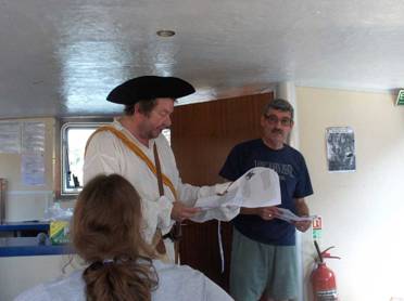 A reading of Treasure Island was the main reason for our voyage, and, as you can see by the pictures below, the narrator was ably assisted by Blind Pew (too frightening to show) and a hairy Ben Gunn. After one and a half hours of enjoyable cruising – which seemed to fly by – we were back at Castle Park.