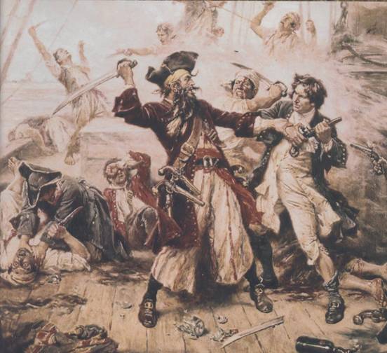 Hornigold took Rogers’ pardon in 1718, but Blackbeard carried on his reign of terror in Virginia. There, with his ship’s master Israel Hands, they caused havoc all around: one of their more notorious acts was to blockade harbours for days on end to obtain goods and ransom money. In the end Governor Spottiswood brought in the Royal Navy to finish Blackbeard off.
