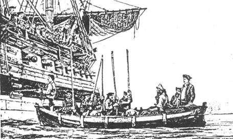 Selkirk being rescued from Juan Fernandez Island by Woodes Rogers’ expedition