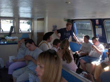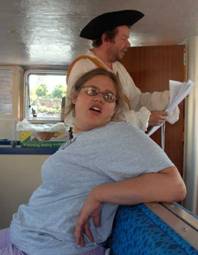 A reading of Treasure Island was the main reason for our voyage, and, as you can see by the pictures below, the narrator was ably assisted by Blind Pew (too frightening to show) and a hairy Ben Gunn. After one and a half hours of enjoyable cruising – which seemed to fly by – we were back at Castle Park.