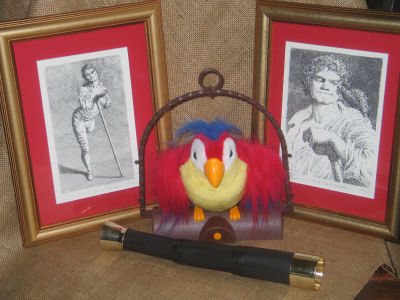 Silver could ingratiate himself with just about anybody and before long not only Jim befriended him, but Trelawney confided in him as well. Jim was also fascinated by Silver's "bumboat" parrot, Captain Flint, who in no time Jim got to cry out "Pieces of Eight, Pieces of Eight".